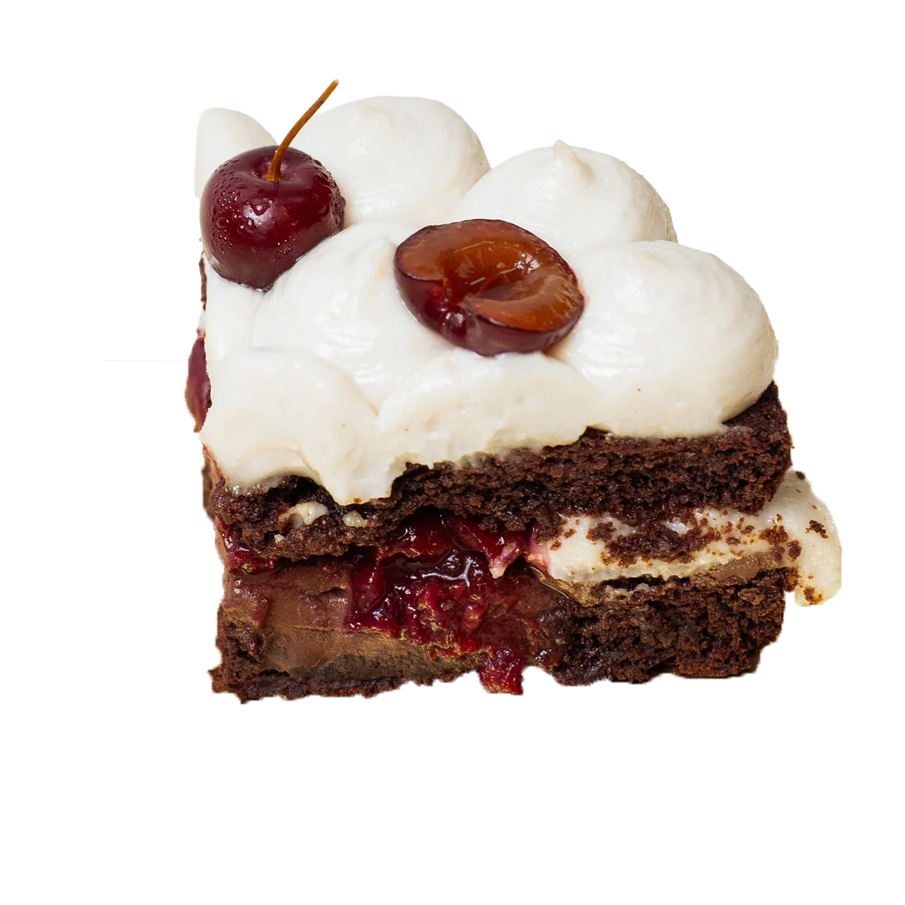 A rich, fudgy chocolate cake layered with silky vegan custard and bursts of fresh cherries. Crafted with almond flour, millets, and sweetened with monk fruit and Khandsari